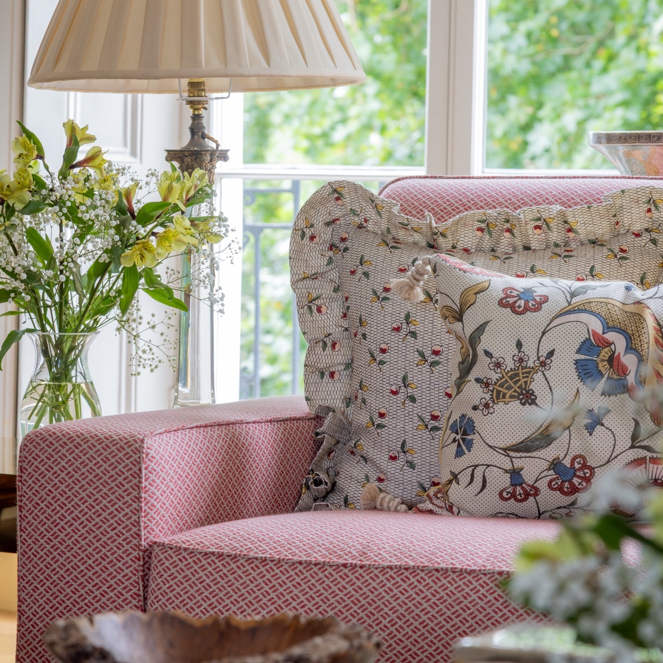 A beautifully soft 100% linen cushion cover, featuring a delicate design that brings gentle charm and subtle texture. Woven and printed in France, the “Baies” pattern is taken from Antoinette Poisson’s collection of domino papers. Matching fabric is used on both front and back. Our cushion covers are handmade in England.