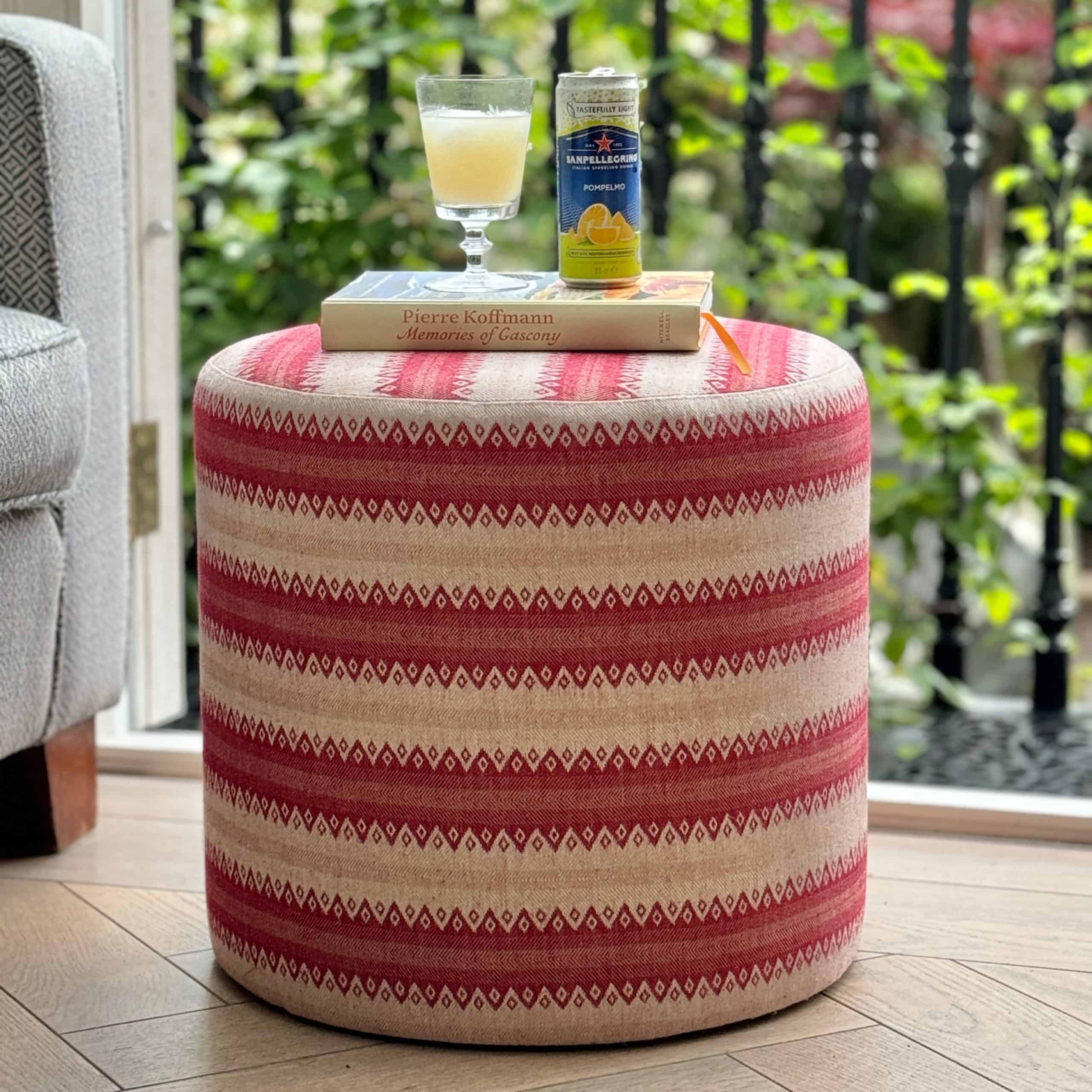 Our pouffes are perfect for extra seating; pulled around the fireplace or ottoman when the house is full, or as a side table with a book or tray.