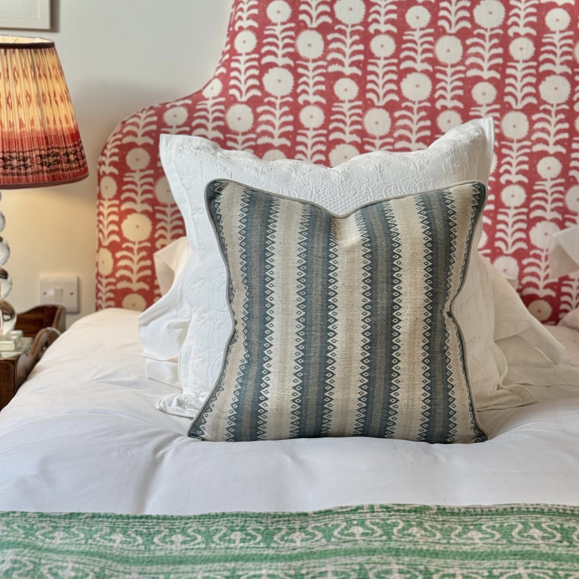 Inspired by a nineteenth century costume design, Cothay Stripe is a woven, vertical stripe that is large in scale. Double sided and finished with a linen piping. Our cushion covers are handmade in England.