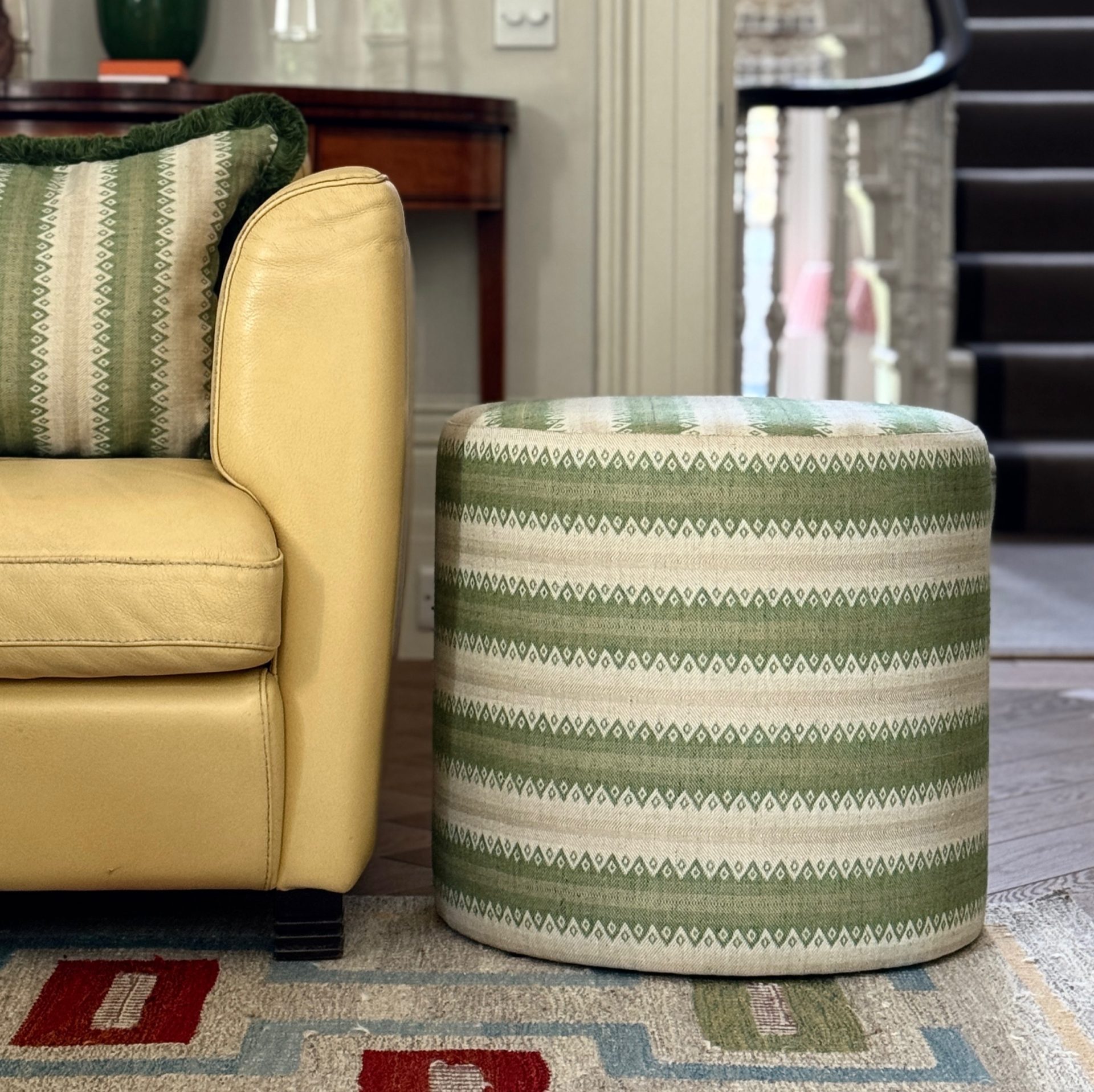 Our pouffes are perfect for extra seating; pulled around the fireplace or ottoman when the house is full, or as a side table with a book or tray.
