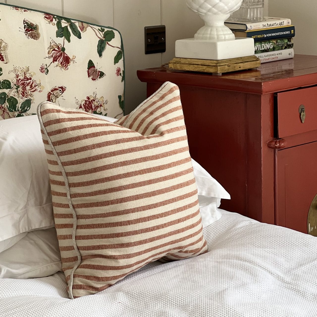 100% linen soft washed linen, that we’ve made with a double thick frill. Available in two sizes, they sit beautifully in front of a headboard, or due to their size are a relatively inexpensive alternative to a headboard.Our cushion covers are handmade in England.